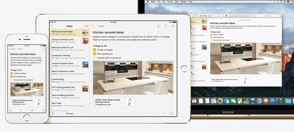 The Notes app has been enhanced quite a bit. You can now make a checklist, take photo notes, draw scribbles on notes, add URLs or even add a map location. All the Notes data will be synced across all your Apple devices via iCloud. Again, a feature that is not really earth shattering. But one interesting bit is that Notes gives you the ability to see all your attachments such as pictures, map locations, sketches, URLs in one single place which lets you sort through these different data types.
