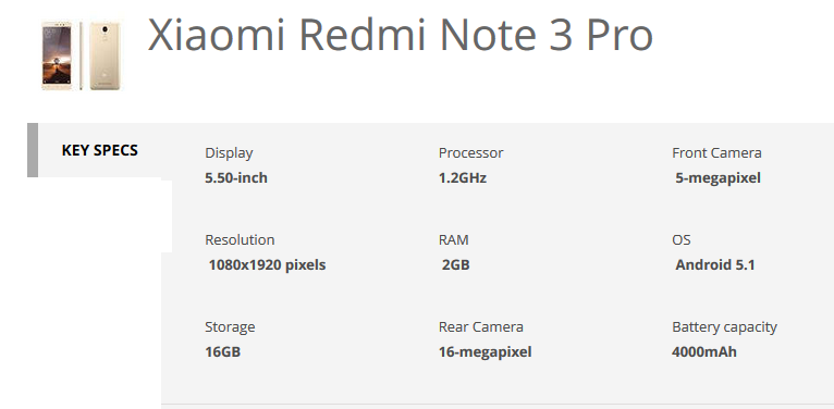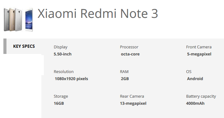 It runs MIUI 7 based on Android Lollipop and supports dual 4G SIM cards. The handset packs a 4000mAh battery with fast charging support that can charge up to 50 percent in 1 hour, same as the Redmi Note 3. On the camera front, the Xiaomi Redmi Note 3 sports a 16-megapixel rear camera with phase detection autofocus (PDAF) and two-tone flash. It also houses a 5-megapixel front camera. It measures 150x76x8.65mm and weighs 164 grams. For connectivity, the handset supports 4G LTE (compatible with Indian LTE bands), Bluetooth, 3G, GPRS/ EDGE, GPS, Glonass, Wi-Fi, and Micro-USB.